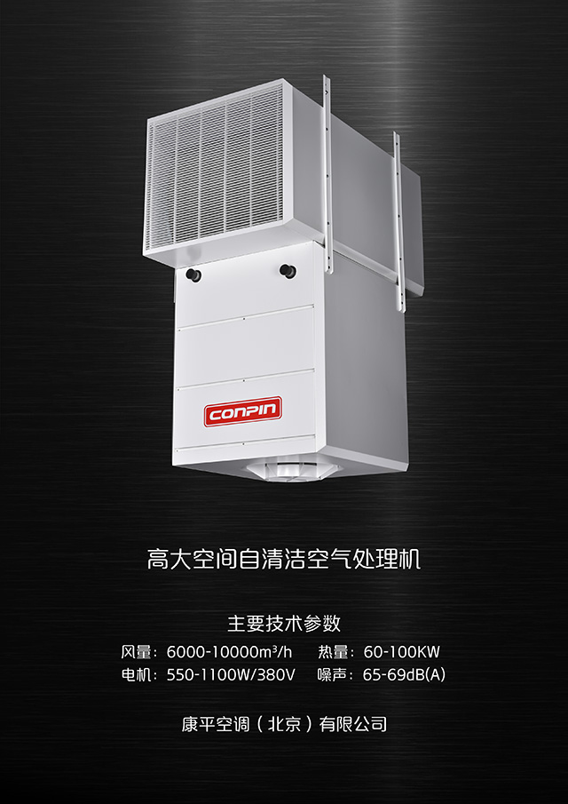 康平進風自清潔高大空間空調(diào)機組根據(jù)用戶要求數(shù)字遠程控制環(huán)境溫度、風量、熱量,以及自動冬季防凍控制裝置。