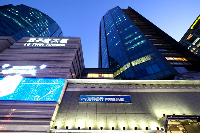 位于雙子座大廈的韓國友利銀行北京分行,2016年,選用了康平明裝電熱風(fēng)幕。
