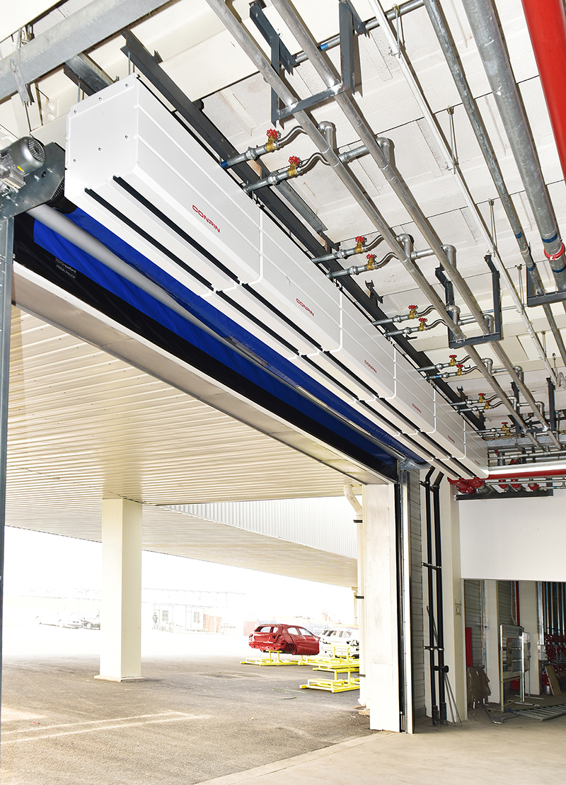 選用產(chǎn)品:頂吹熱風(fēng)幕,大門側(cè)吹風(fēng)幕,側(cè)吹暖風(fēng)機(jī),