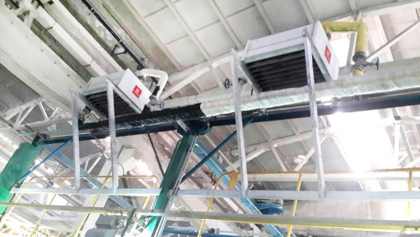 鄭州宇通客車(chē)車(chē)間應(yīng)用康平高溫蒸汽頂吹暖風(fēng)機(jī)。