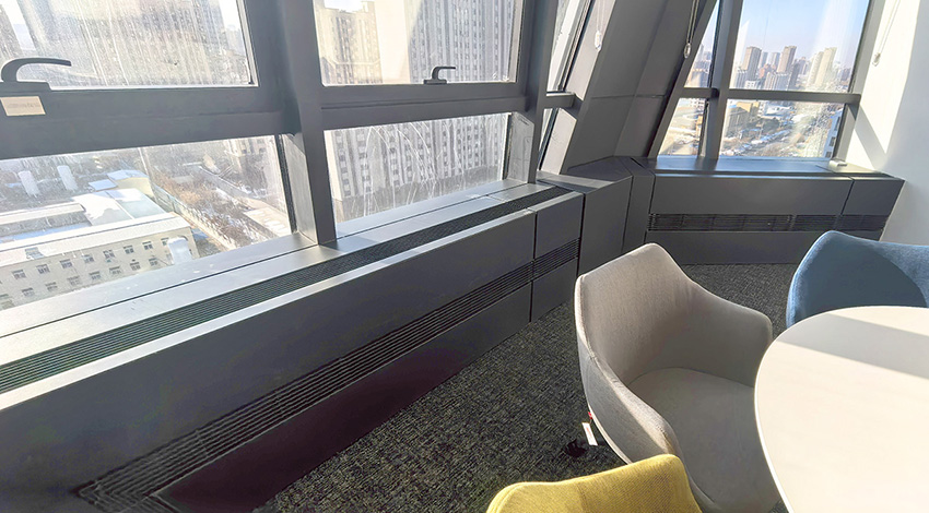 7.5公里幕墻保溫需求,經(jīng)甲方實地考察,康平低能耗高效幕墻對流散熱器入選,風(fēng)機(jī)能耗、換熱量、噪聲 經(jīng)國家空調(diào)質(zhì)檢中心嚴(yán)格檢驗,實地測量尺寸 量身定制,應(yīng)用康平可三維調(diào)節(jié)精裝專利